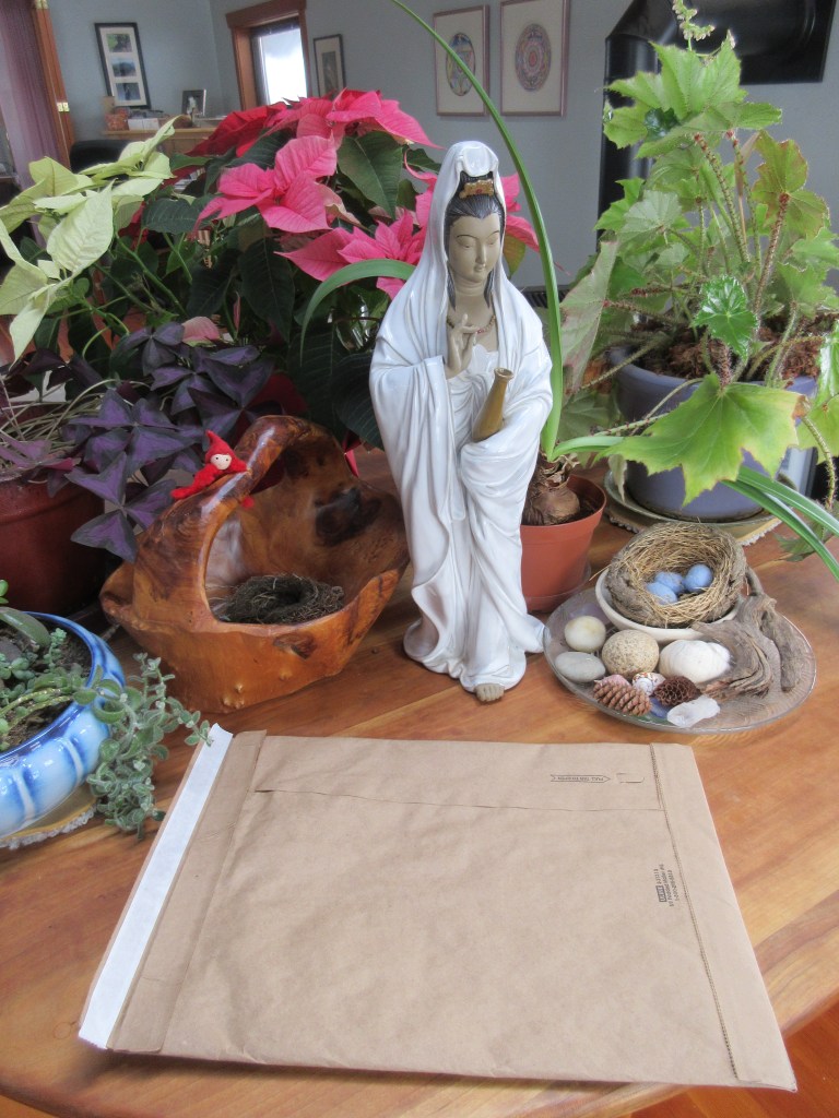 That brown thing (below) is the most wonderful mailer! They are padded, but NOT with plastic. I finally found such a thing and they just arrived the other day. It gave me a special satisfaction and joy today to get a book ready to be mailed out (it was an already published book)!