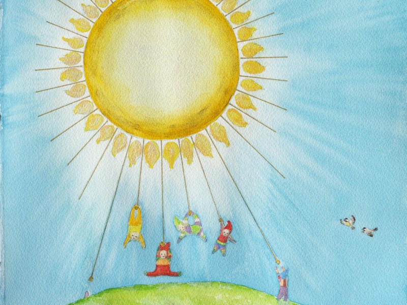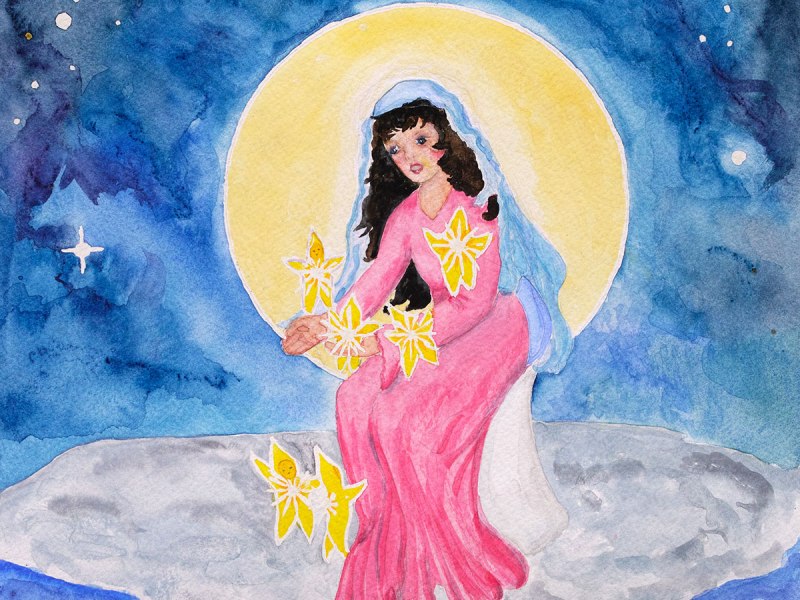 This lovely picture is especially beautiful to me because of the Truth behind it. The star children have found the Mother-of-Us-All and ask her how they can get down to the earth world.